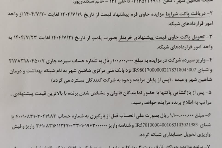 برگزاری فروش اقلام ضایعاتی شبکه بهداشت و درمان شاهین شهرو میمه طی مزایده
